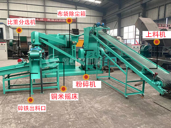 電線粉碎分離機是銅米機的別名,也有部分用戶把銅米機稱為電線粉碎分離機。電線粉碎分離機一般由線材粉碎機、輸送機、比重分選機、集塵器等組成,雖然電線粉碎分離機上有幾種設(shè)備,但這些設(shè)備全由配電網(wǎng)控制。銅精米機是把金屬絲打成粒狀,然后過篩的裝置。該設(shè)備還有許多其他名稱,如線磨機、銅分線機等。